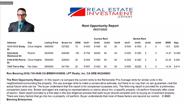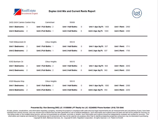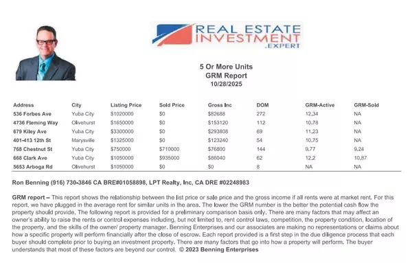 The 30-day Market Trend Reports for Duplexes and Fourplexes is a good companion to our GRM Reports. The 30-day market Trends Report will help keep you on top of the Micro Trends as they appear. Market Changes Leave Evidence. With these reports and our other tools, you will be making "Smart Moves" Long before "The Street" (Average Investors) see the market changes you will already know about!